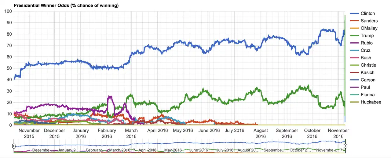 · 预测市场不能保持「正确」,失败的案例正是由于人们将预测市场给出的概率视为已然的事实