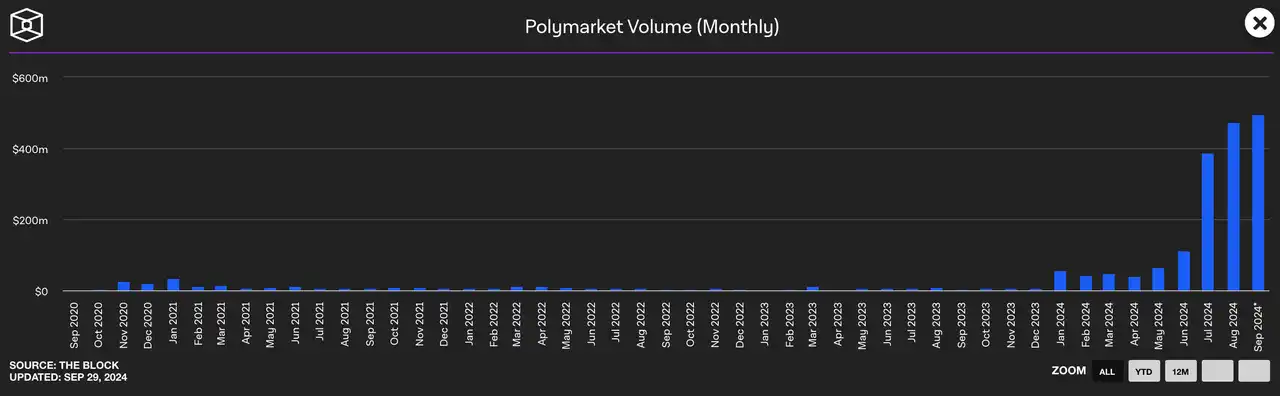 Polymarket 的交易量在 2024 年明显放大