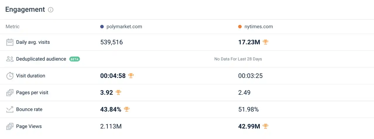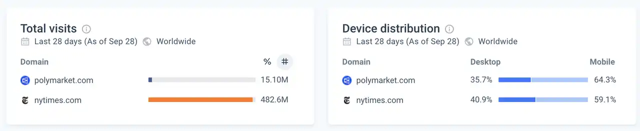 Polymarket 和纽约时报的网站数据对比 来源: similarweb