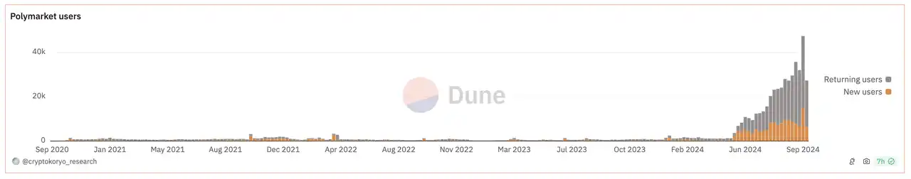 新用户的涌入迅速推高了 Polymarket 的用户基数