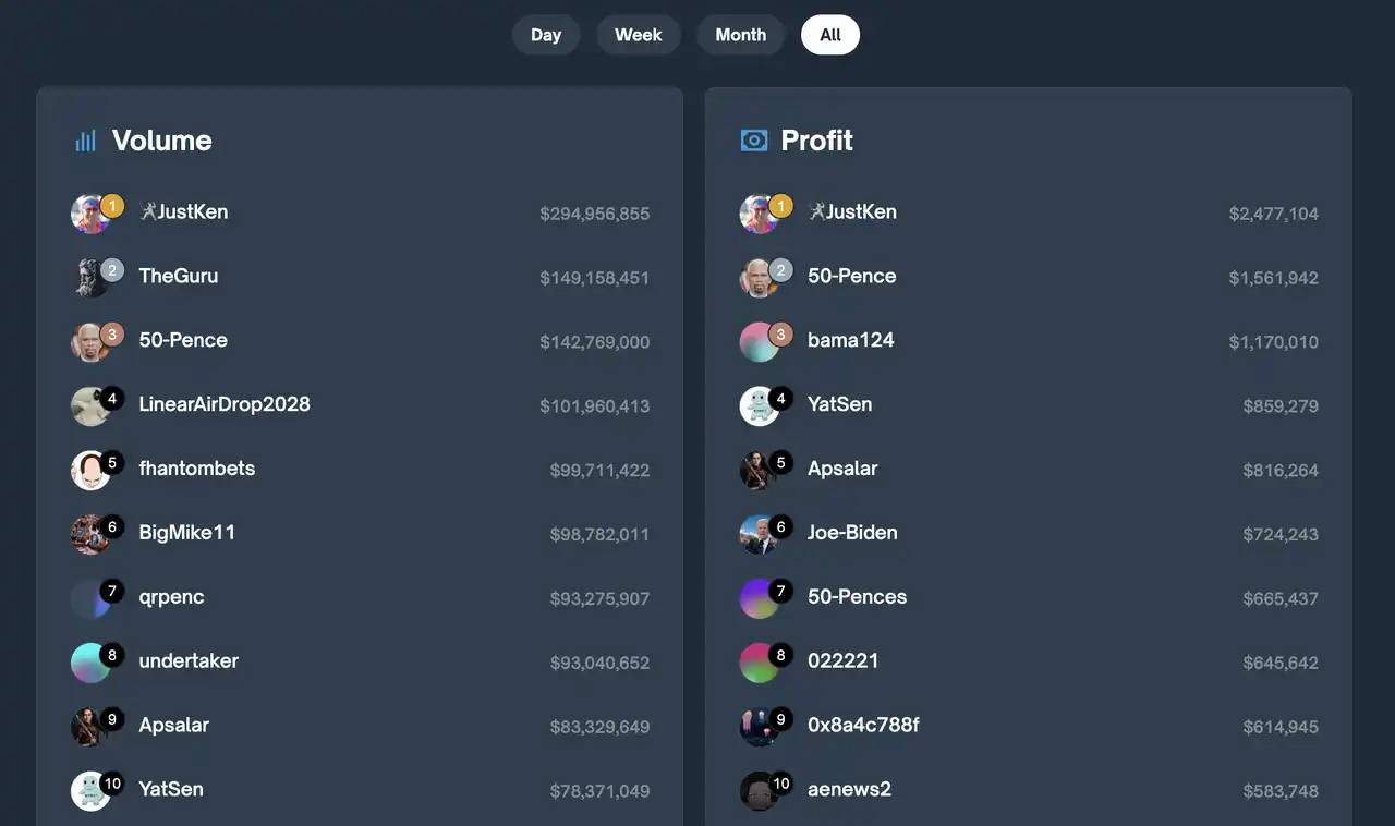 Polymarket 排行榜