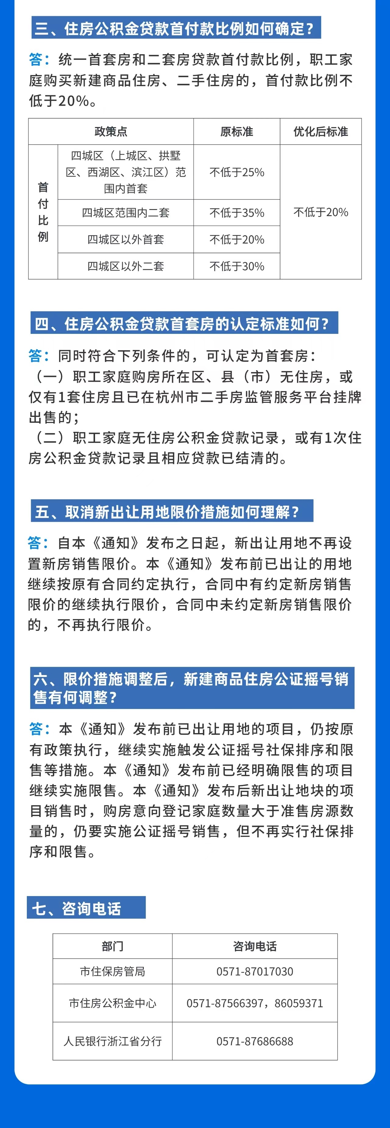 杭州楼市新政:住房商业贷款不再区分首套、二套,最低首付款比例统一为15%