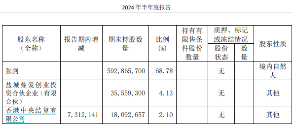 爱玛科技2024年半年报显示,张剑是公司**大股东,也是**一个持股比例在5%以上的股东,截至报告期末,张剑的持股比例高达68.78%。