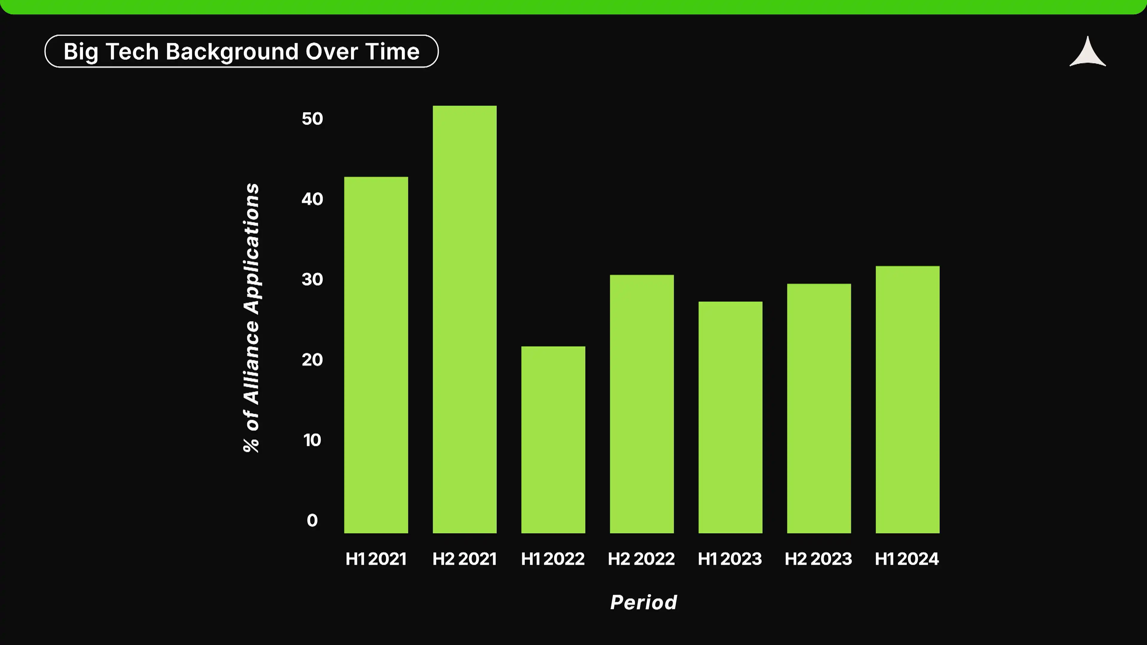 为什么会减少?这可能与创始人因监管问题而减少的美国申请者有关(而美国正是大型科技公司的所在地)。此外,2021 年的牛市更像是一场「淘金热」,吸引了许多非加密领域的人士涌入加密行业,试图从中获利。**,2024 年,加密货币在科技工作者中的关注度可能正在迅速转向 AI 等其他行业。实际上,在上一个牛市期间,我们看到几家 Alliance 的初创企业转向了 AI。