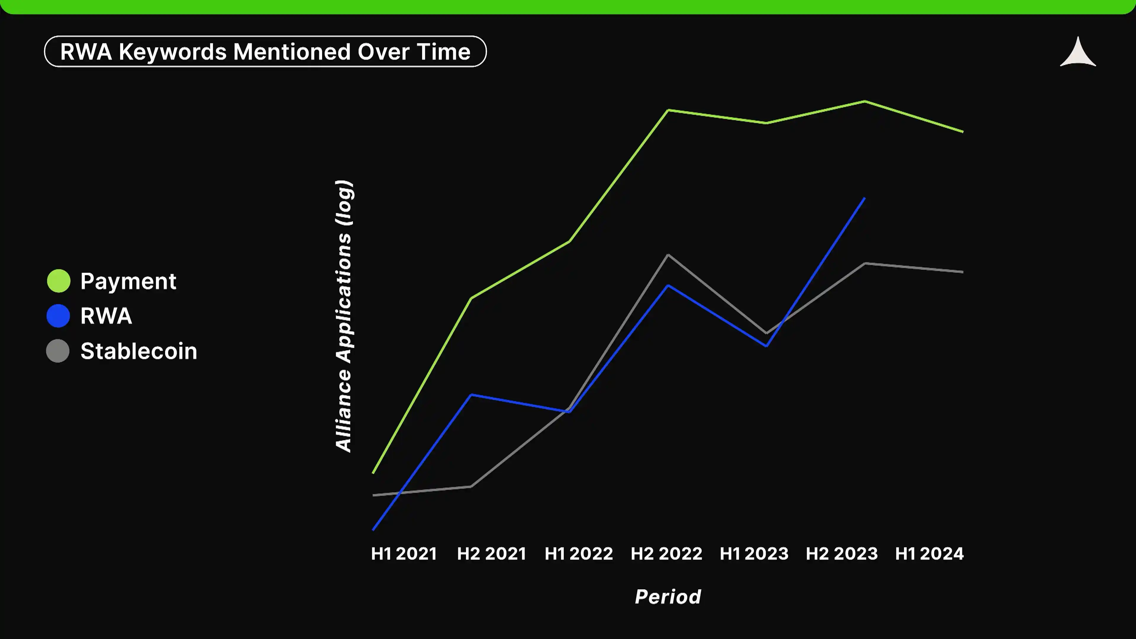 申请联盟的初创企业提到「支付」(payment)、「稳定币」(stablecoin)和「RWA」的趋势持续上升。如前所述,基于稳定币的支付是加密中为数不多的证明了产品市场契合度的应用,尤其是在新兴市场。