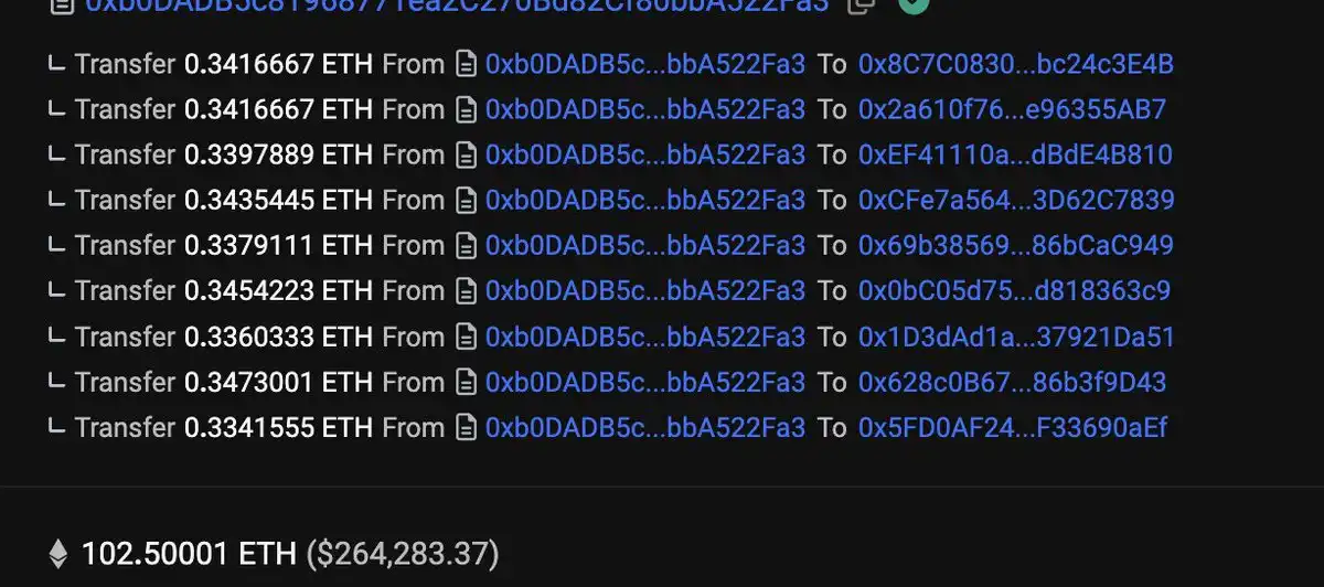 ETH 被半随机地分配到部署者控制的数十个钱包中,这些钱包通过买卖操作来模拟自然的市场需求并推高图表走势。