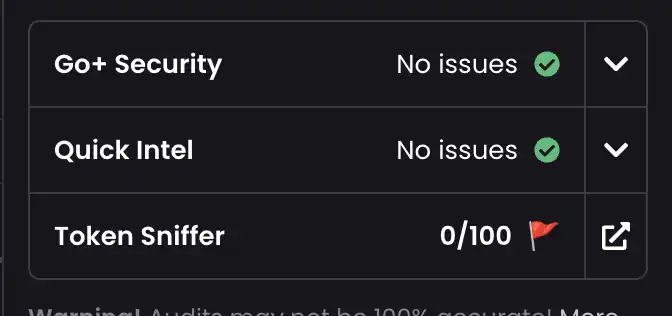 「安全检查」也似乎通过了验证(LP 已销毁、合约所有权已放弃、无蜜罐等)。尽管如此,@Token_Sniffer 已经将该骗子标记出来。