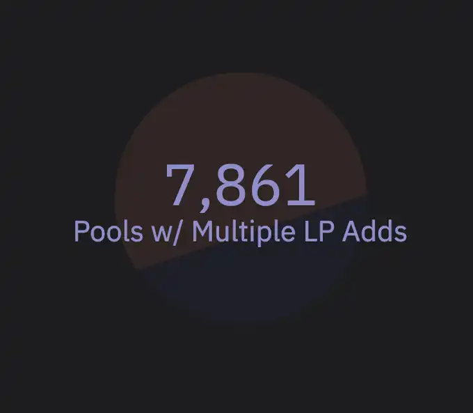 只有约 7800 个 v2 资金池经历过多次流动性添加,当过滤条件提高到超过 2 次流动性添加时,这个数字再次减半,仅剩约 3500 个,这些才是具有生产力的资金池,而不仅仅是 Rug 项目。