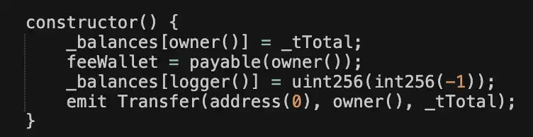 合约中有一个构造函数,故意使用整数下溢,将** uint256 数量的余额分配给部署者控制的一个「隐藏」钱包。因此这些**不会显示在「**供应量」或 Basescan 上的持有者列表中。