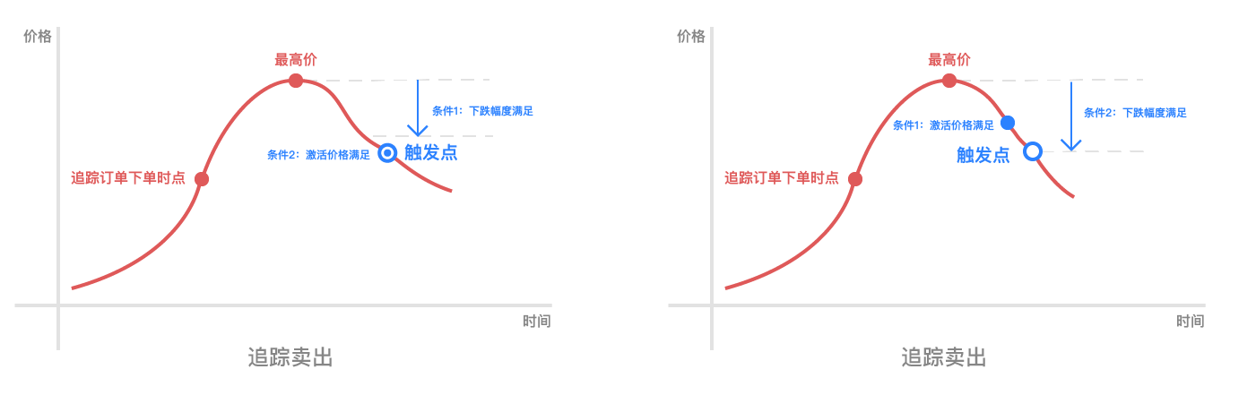 二、如果用户没有设置激活价格,追踪订单触发的条件为: