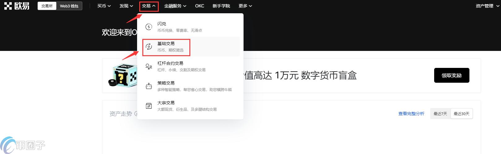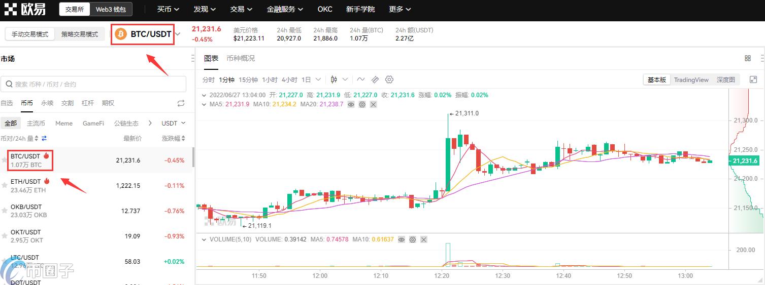 6.获得USDT后,依次点击【交易】--【基础交易】进入交易页面