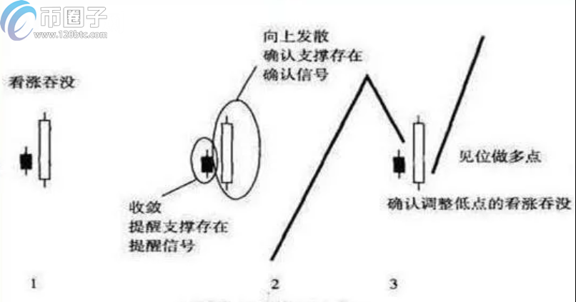 看涨吞没是指右面的阳线实体**盖住左面的阴线实体这样的形态,又称为阳包阴。看涨吞没形态反映出股价本来处于下降趋势之中,但是后来出现了一根坚挺的实体,这根实体将它前面的那根实体吞没了。说明市场上多方已经压倒了空方。后市可能结束下跌行情,转而向上。应用法则: