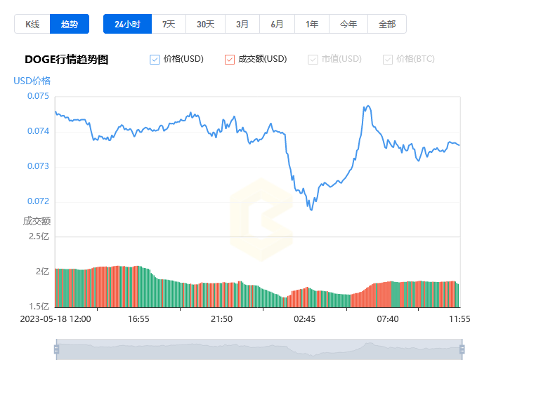 | Binance | DOGE/USDT | $0.0735 | $5659.99万 |