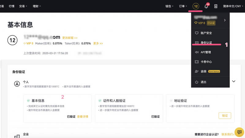 为了防止**等违法行为,购买数字货币都需要先进行身份验证,你可以按照下面的流程在币安网完成身份验证: