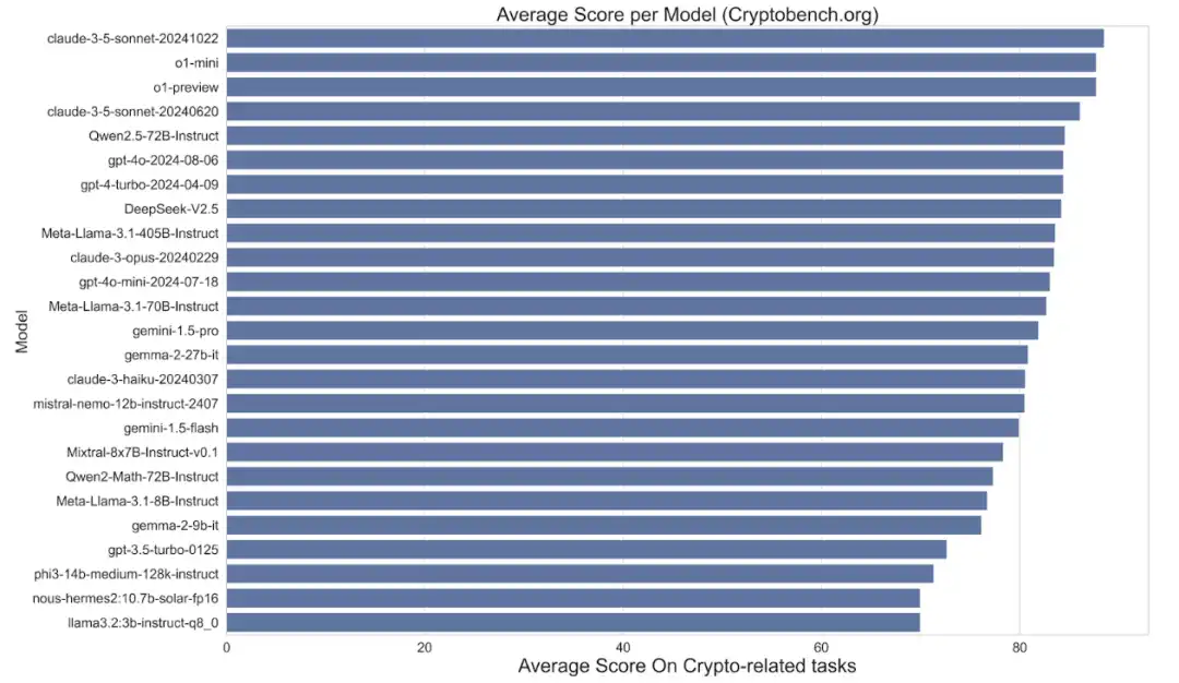 随着人工智能的持续进步,我们预计在 AI 迷因领域将出现新一轮的创新浪潮。**发布的 Claude 3.5 Sonnet 模型(版本 2024-1022)已经在与加密货币相关的任务中创下了基准分数的新纪录。