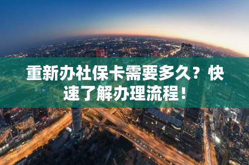 重新办理社保卡的时间因多种因素而异,一般需要15天至45天不等。具体时间取决于多个因素,如所在地区的办理流程、人流量、系统更新等。幸运的是,由于系统已经存储了用户的基本信息资料,重新办理时所需时间会相对减少。