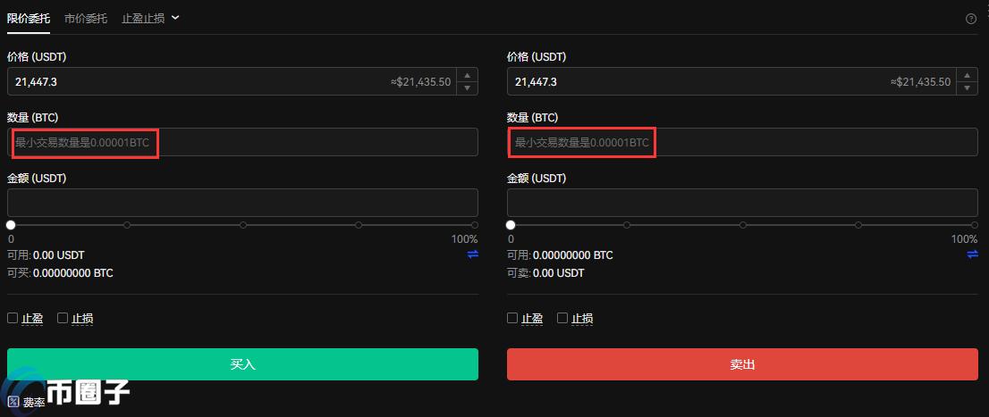 6.填写BTC卖出数量,注意BTC**交易数量是0.00001BTC。
