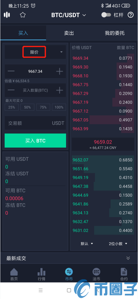 6. 然后您可以根据自己的需要,来选择限价/市价交易。