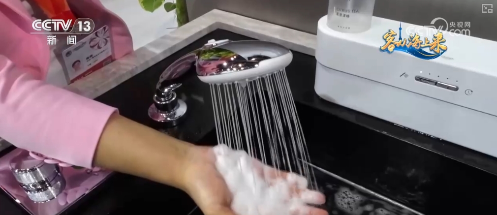 有了舒适的居家环境,洗个澡正好可以缓解您一天的疲劳。第二个关键词“舒适”。以后,不单是躺着,站着也可以洗泡**了。这是进博首秀的一款来自德国的白丝绒泡泡淋浴系统,泡沫生成和雨淋模式可以一键直达,泡沫绵密细腻,舒适清洁肌肤。