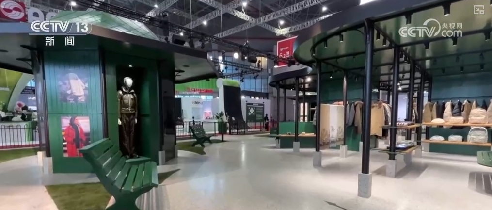 比如用超30万颗积木颗粒搭建的高达4.75米的装置;运动服饰品牌将展台设计成了一个卷起来的瑜伽垫的造型,打造沉浸式的运动场景;还有还原伦敦公园标志性景色的英伦风情展台;用回收木材搭建的木质自然风展台,也特别契合回归自然的品牌理念。