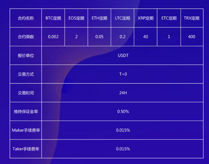 定期合约目前为半年期合约,每周五17:58会进行结算,半年后的**一个周五即香港时间2019年7月26日17:58为交割时间。定期合约是标的物为数字货币、全程USDT计价结算、定期交割的数字货币合约。为方便交易,定期合约将使用和USDT合约相同的乘数。