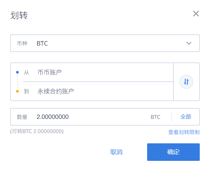 注:目前仅支持“币币账户”与“永续合约账户”相互划转。