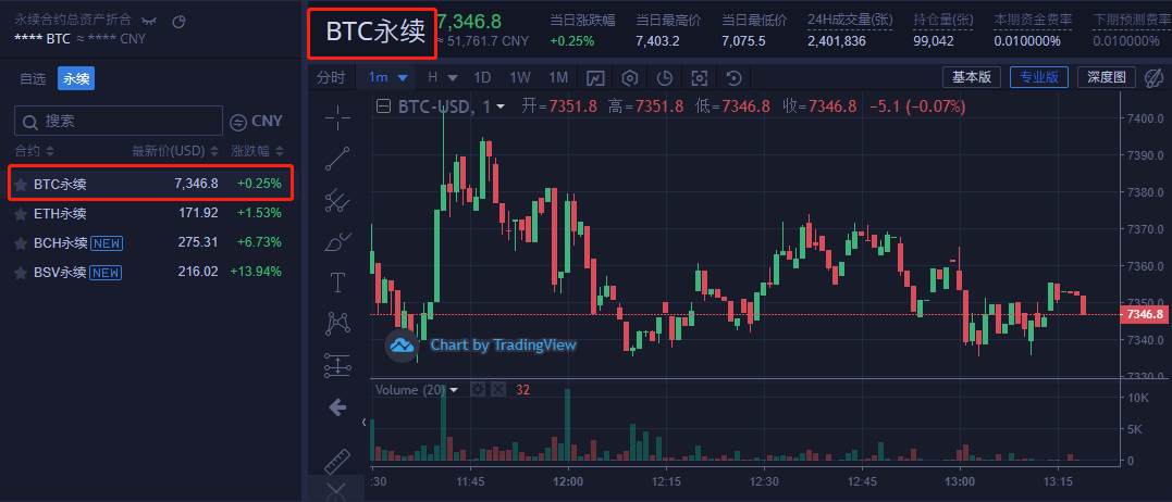 7、根据需要选择对应的品种合约,如BTC永续合约。