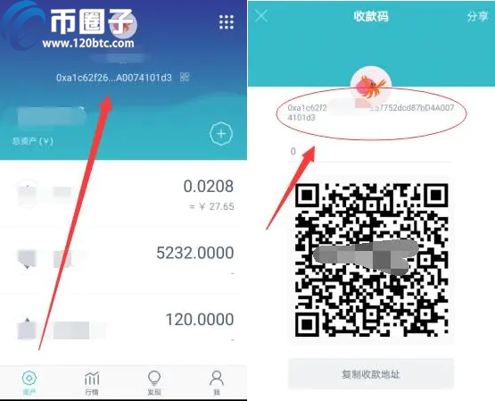 3、一般从交易所提币都是提现到钱包中,所以提币地址就填写自己的钱包地址。钱包地址在使用的钱包中可以查看,以imtoken钱包为例,打开钱包,点击【资产】在最上方有一个数字 英文的组合,这个就是你的钱包地址,一般一小时内到账