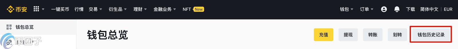 8. 提币成功后,返回【钱包】-【账户总览】,点击【钱包历史记录】。选择【提现】和对应的【日期】可以查看该币提现。还可以找到该币提现后,点击对应的TxID进入区块链,查看该笔提币的进度。