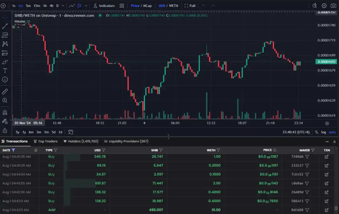 SHIB 的初始交易池:https://dexscreener.com/ethereum/0x811beed0119b4afce20d2583eb608c6f7af1954f