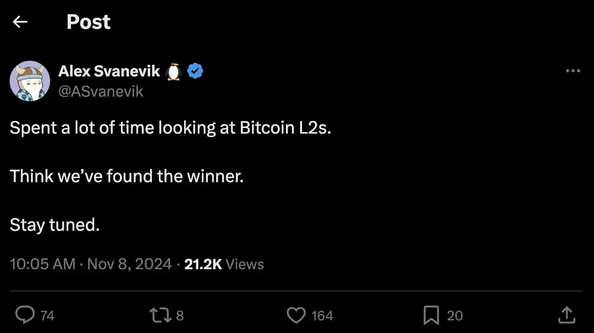 1.Nansen CEO 认为的 BTC L2 的赢家,@ASvanevik