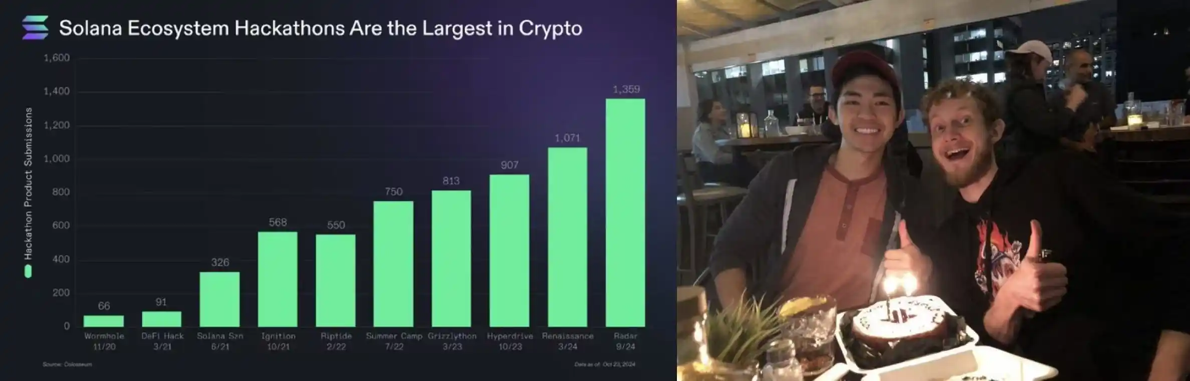 初创飞轮在 2025 年将继续高速运转,colosseum 黑客松(Solana 的黑客马拉松)是加密领域**的天才发现和人才成长计划,其过往参与者已累计获得 6.5 亿美元的融资。