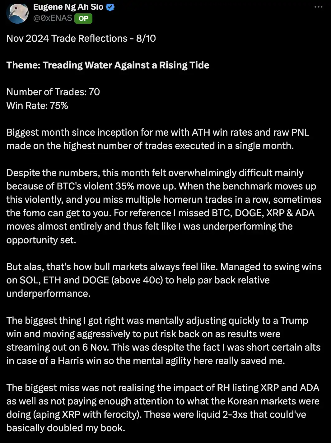 1. **交易员的反思笔记 @0xENAS