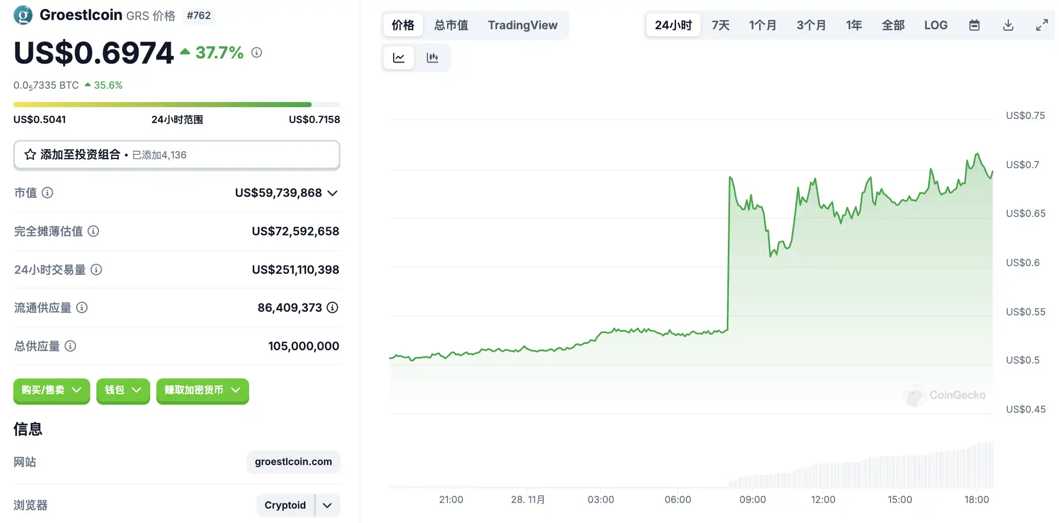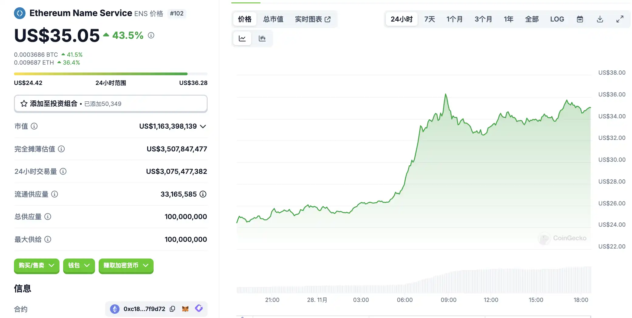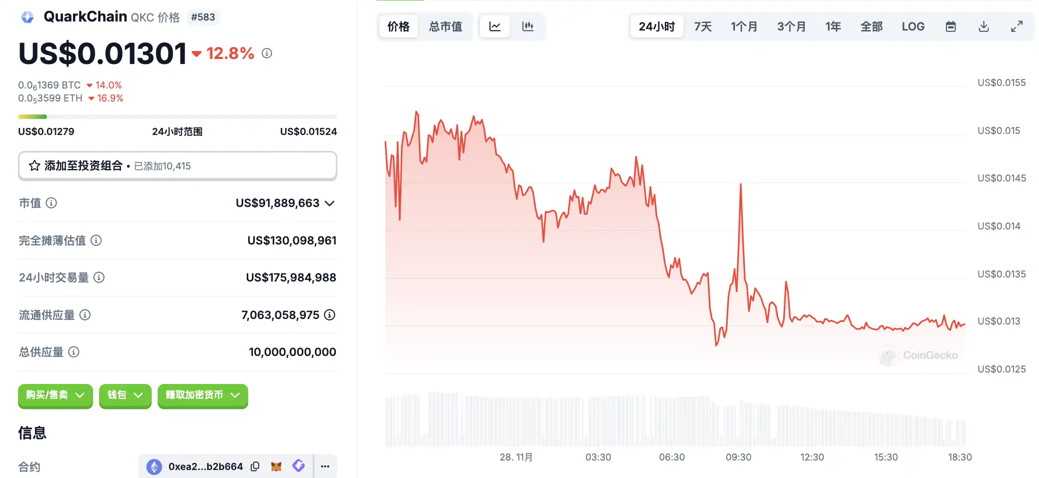 11 月 28 日**波动情况,按交易量筛选并排列