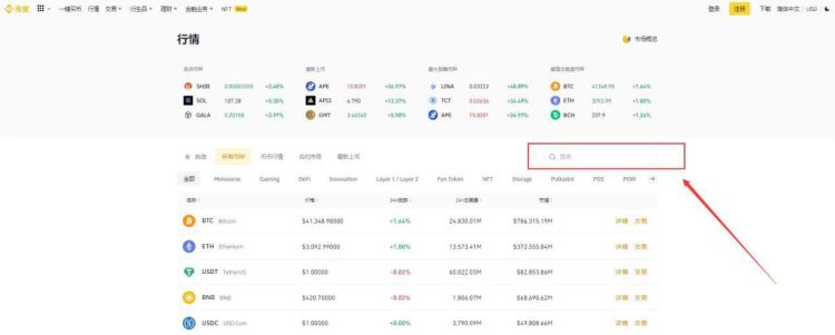 一、登陆币安官网,进入行情页面(注意:**用户目前仅支持邮箱注册!)