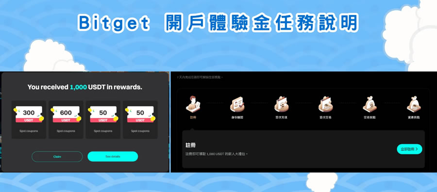 | 注册 | 1000 USDT | 容易 | Bitget 注册与KYC 认证攻略 |