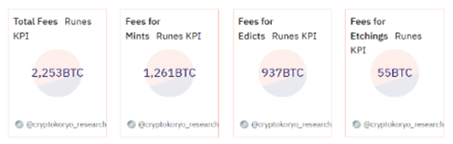 尽管交易量的激增在**程度上提升了网络费用,但这对比特币的交易社区而言是一个积极的信号。在短短的16天内,Runes 协议就为交易社区贡献了2,253 BTC 的费用收入。