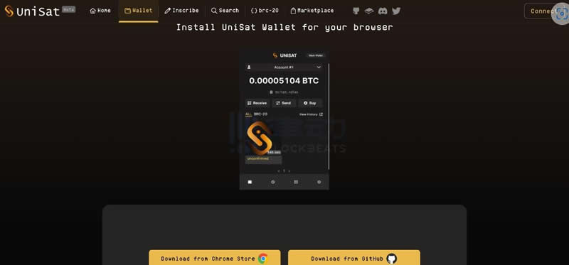 1、打开Unisat官网,选择chrome浏览器下载插件并安装。