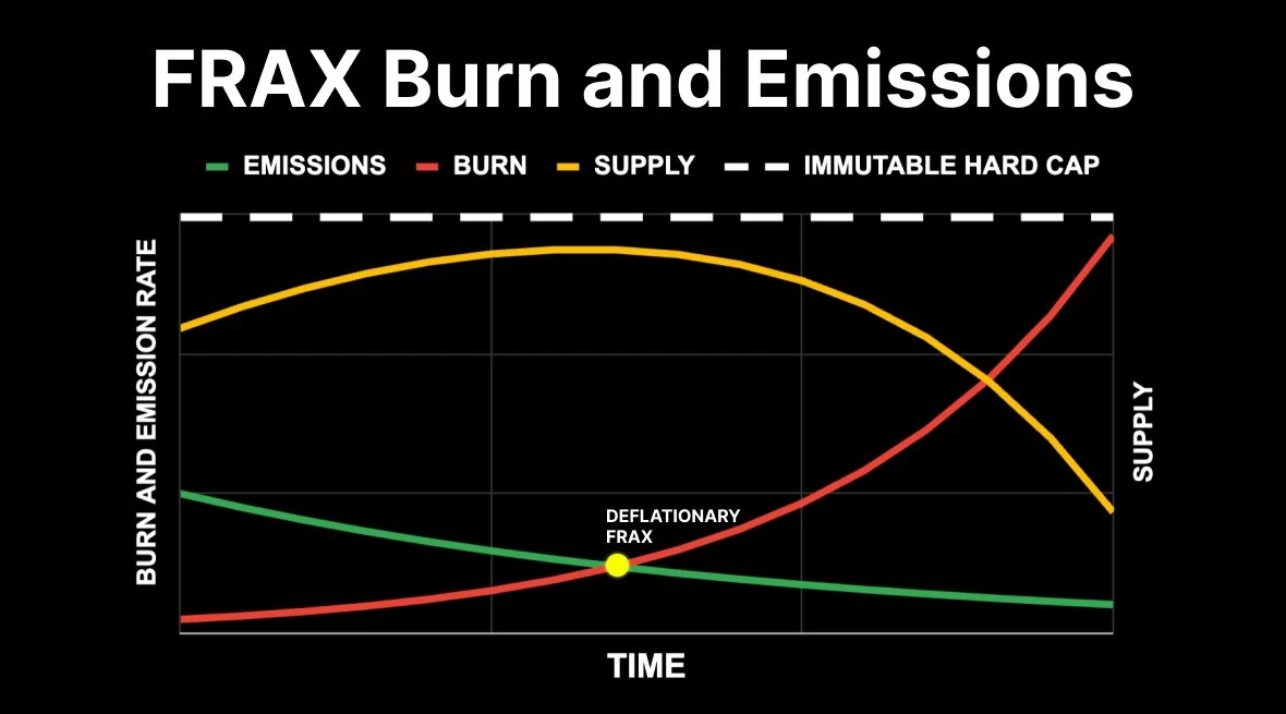 图中标注的“DEFLATIONARY FRAX”表明 FRAX **具有通缩特性。通缩性意味着随着时间的推移,流通中的**数量会减少,这通常会导致单个**的价值上升,从而增加持有者的财富。