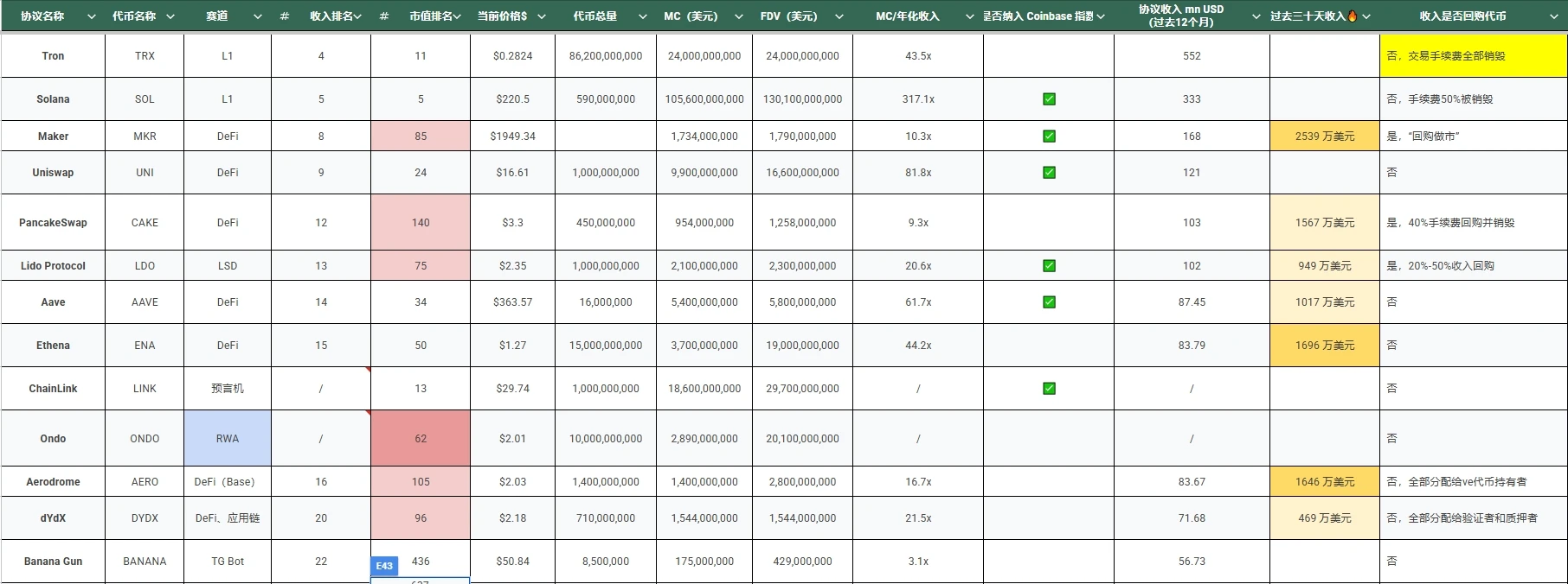 Aave、Ethena 也在协议收入方面遥遥**,分别为 14 和 15 , 最近被特朗普家族项目 World Liberty 买入。