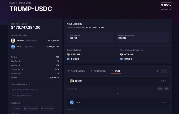 - 转到 Solana 区块链上的 DEX,例如 Meteora、Raydium、Orca。确保 TRUMP 令牌存在在那里。