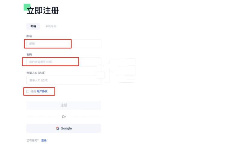 2、在注册页面,根据提示填写信息(邮箱、登录密码等),勾选“接受用户协议”,点击“注册”。