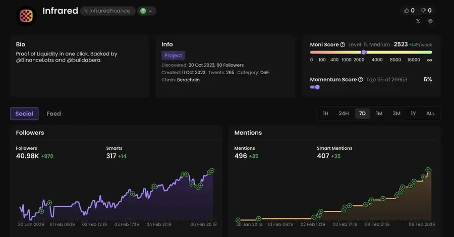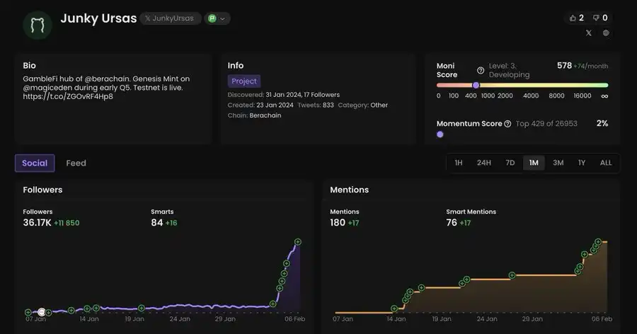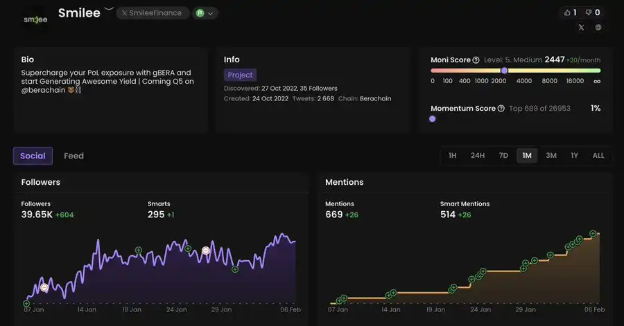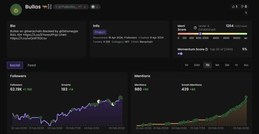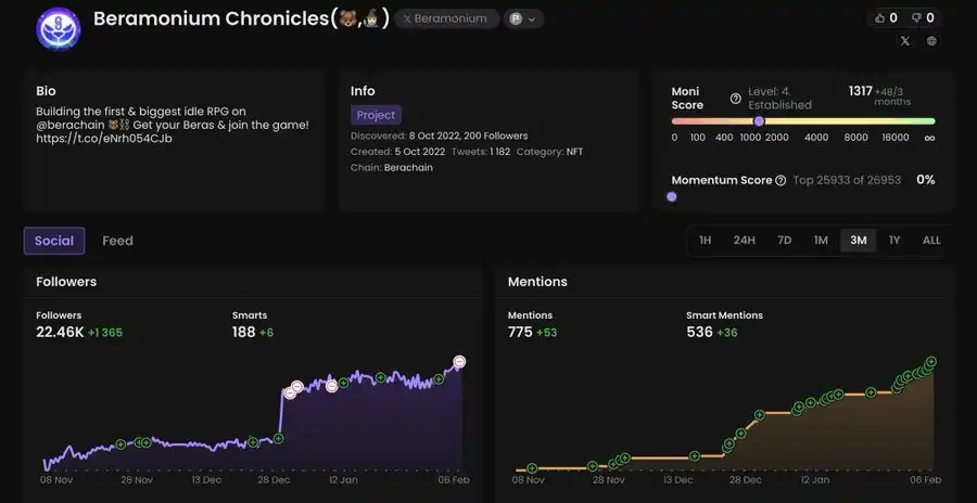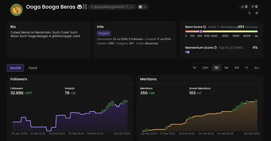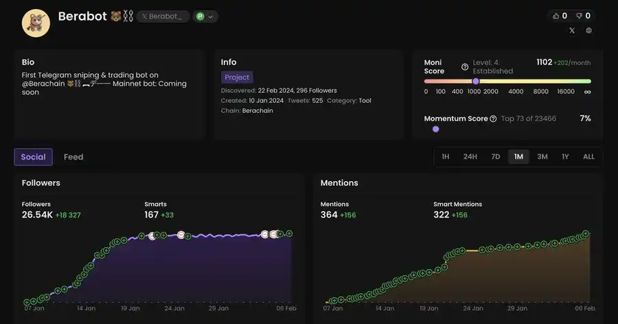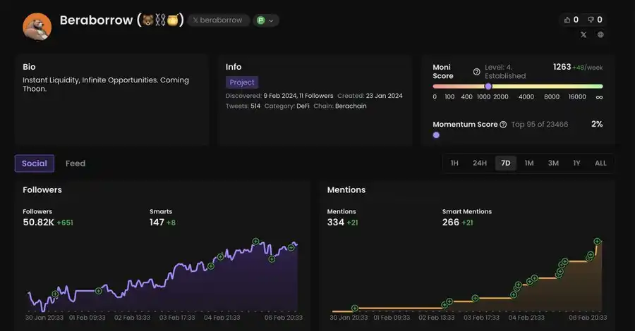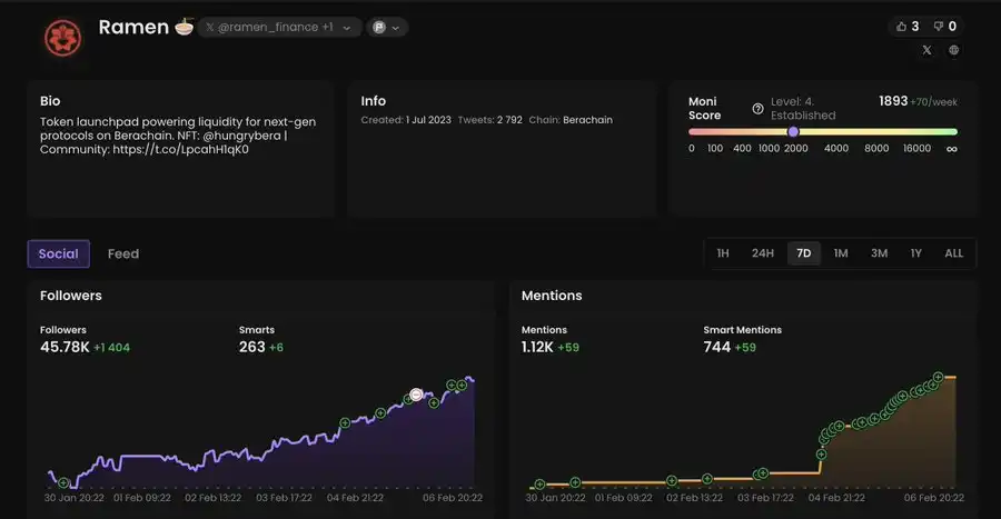 操作建议:NFT 持有者的快照已经完成,他们将获得即将在 2 月中旬 Ramen Finance 上进行的 $BERAMO **销售的 WL(白名单)。你可以考虑参与公开销售阶段。