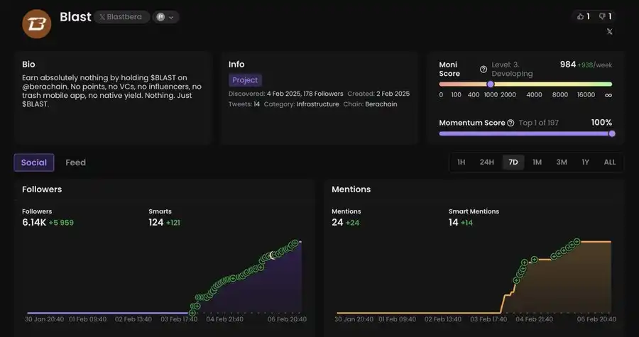 Blast 是一款不提供积分、没有风险资本支持、没有社交影响者、没有低质量移动应用、也没有回报的项目。只有 $BLAST。