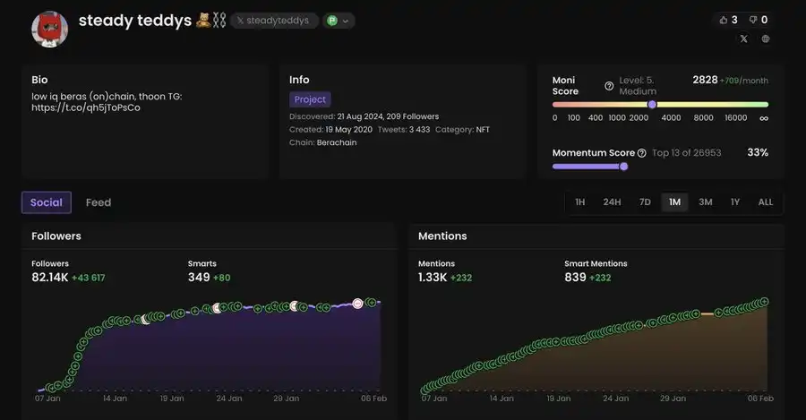 Steady Teddys 是 Berachain 上除了官方系列之外,**大的 NFT 收藏。该系列的头像被 Berachain 生态系统中的许多成员使用。