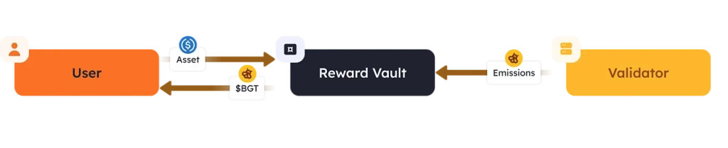 一旦用户收到符合PoL **的资产,他们就可以将其存入相应的保险库,并获得发放到该保险库的所有BGT 的份额。