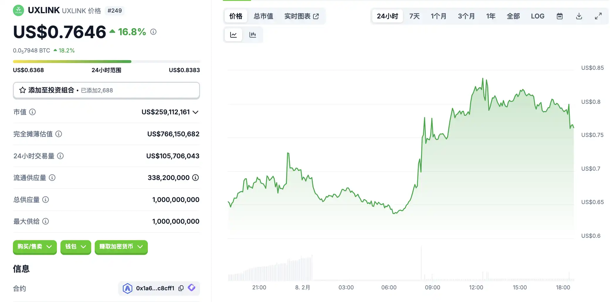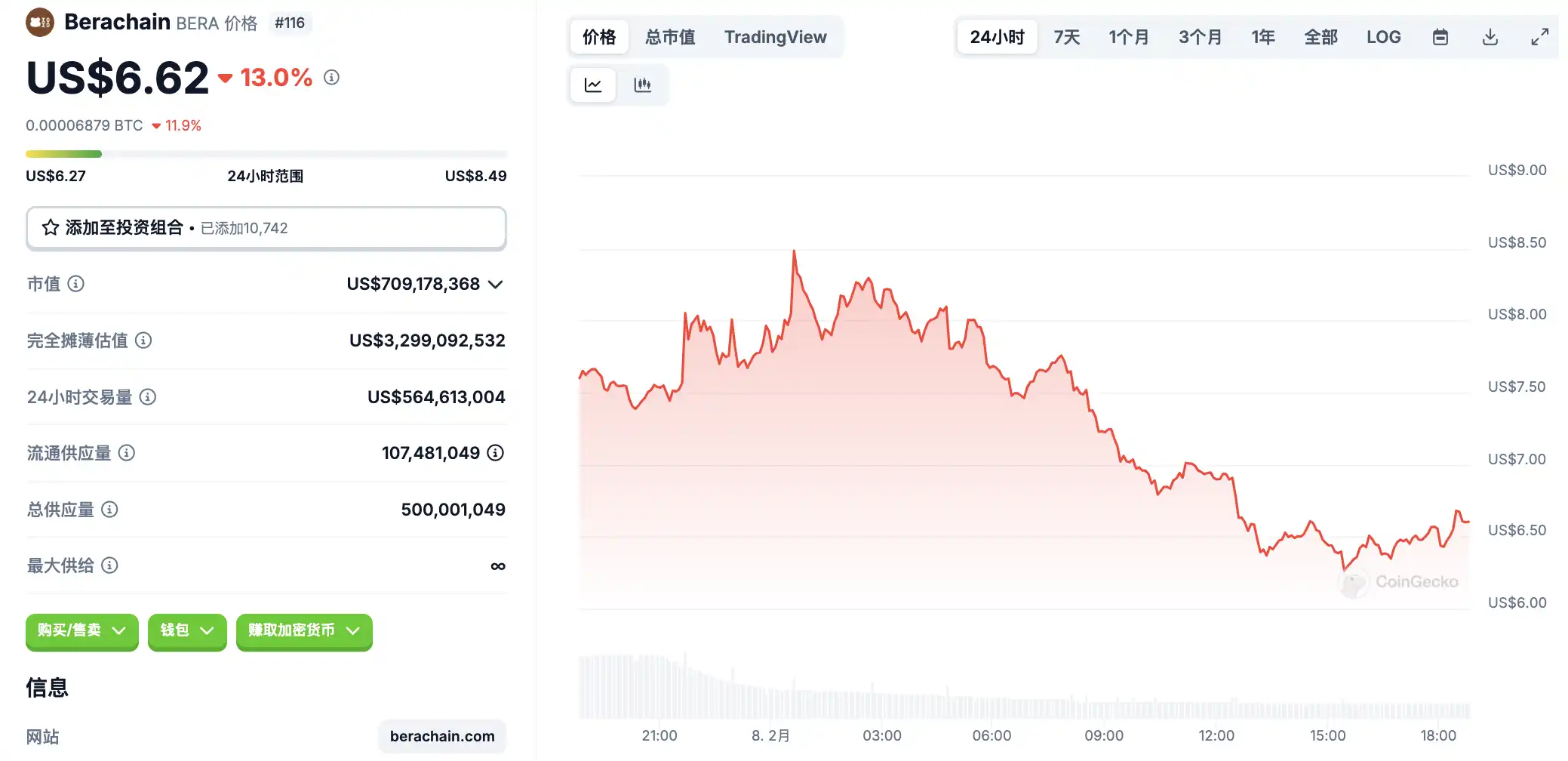 2 月 8 日**波动情况,按交易量筛选并排列