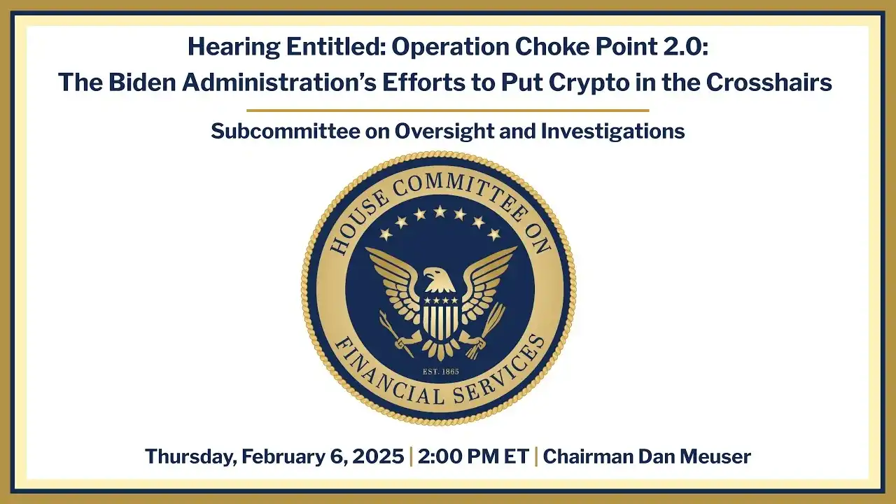 美国国会首先召开对于 Operation Choke Point 2.0 的听证会,邀请加密行业人士来叙述是如何被「卡脖子」的。美众议员 Meuser 在听证会上表示,拜登政府的 Operation Choke Point 2.0 由监管机构实施,专门针对并去银行化数字资产生态系统。