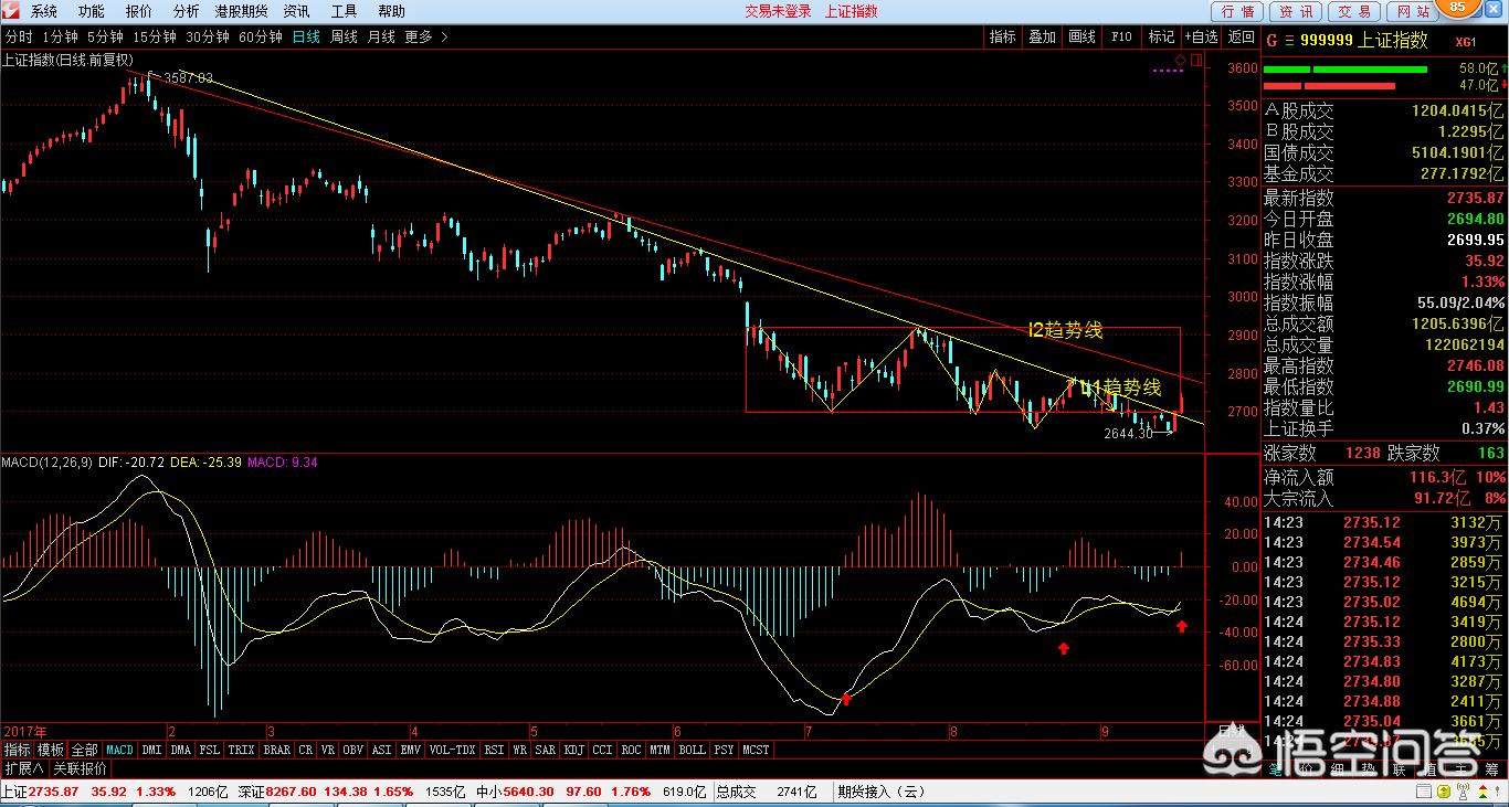 沪指大盘的走势,从今日沪指大盘的走势来看,基本上短期阶段性底部行情已经得到有效确认。值得一提的是底背离非常明显,短期反弹行情有望延续,关注2750和60日均线压力,及2800点和2820缺口压力。