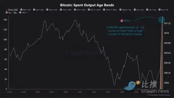 2 月 9 日,知名分析师 Maartunn 分享了一组链上数据: 14, 000 枚 7 至 10 年历史的比特币在链上发生了移动。